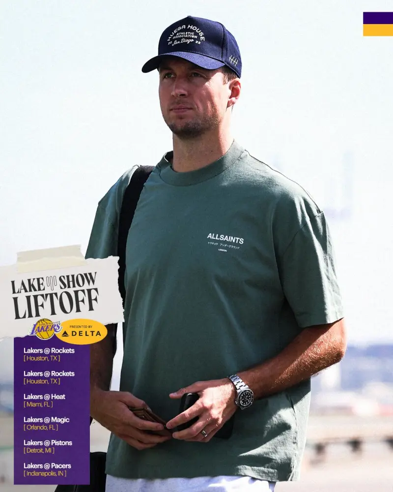 赛前,湖人社媒分享湖人众将奔赴休斯顿的登机照片组图,卢卡-东契奇等球员出镜。